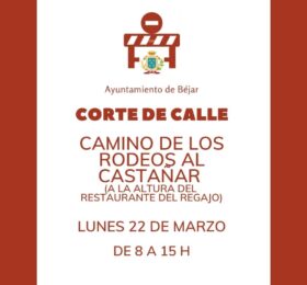 Desde el Ayuntamiento de Béjar se informa que el lunes 22 de marzo de 8 a 15 horas permanecerá cortada al tráfico el Camino de los...