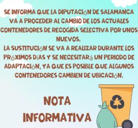 Se informa que la Diputación de Salamanca va a proceder al cambio de los actuales contenedores de recogida selectiva por unos nuevos. La...