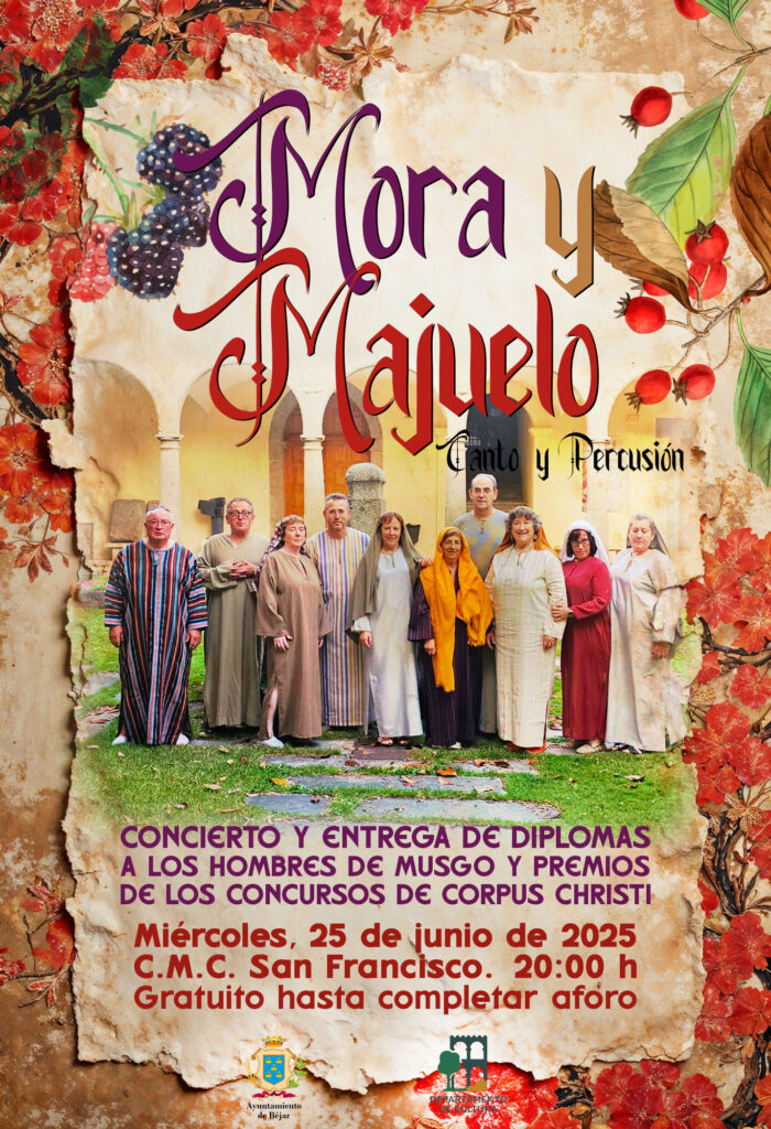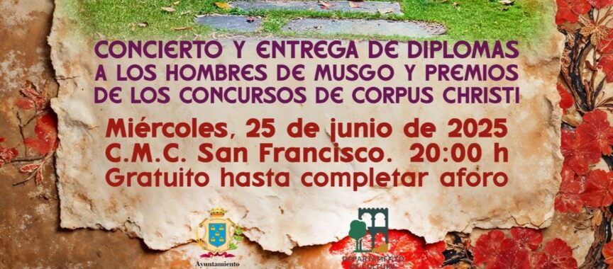 El CMC Convento de San Francisco acogerá mañana, miércoles 25 de junio, a las 20,00h, un concierto de Mora y Majuelo, la entrega de Diplomas a los Hombres de Musgo y los premios a los concursos del Corpus.
