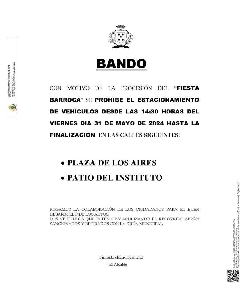 Estas son las restricciones de circulación y aparcamiento con motivo de la Fiesta Barroca