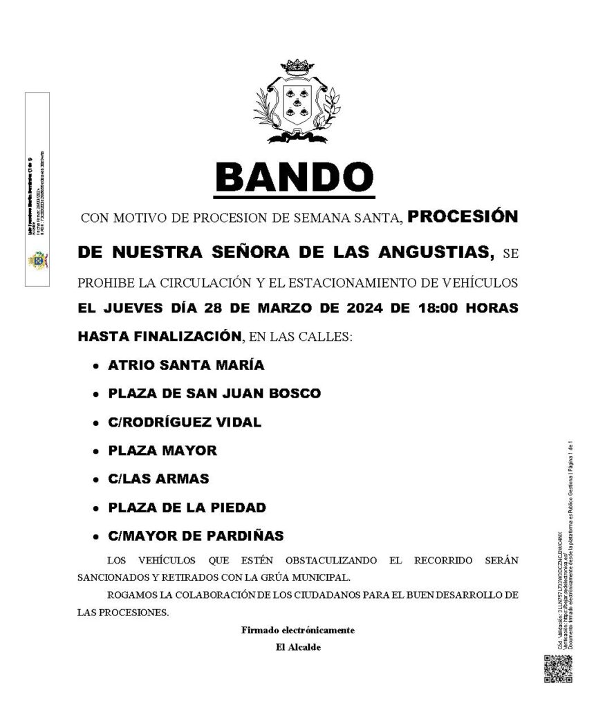 Bando para la Procesión de Nuestra Señora de las Angustias
