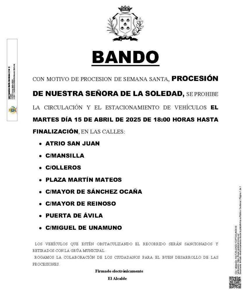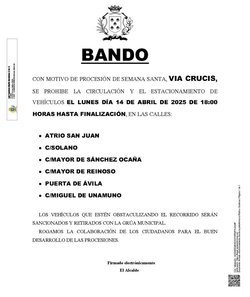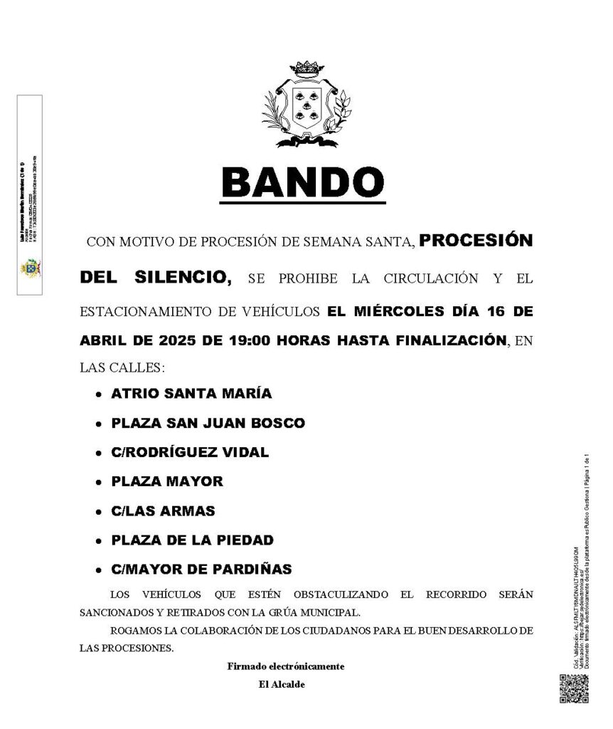 Estas son las restricciones de aparcamiento y circulación con motivo de los actos y procesiones de Semana Santa: