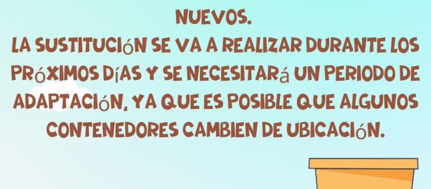 Se informa que la Diputación de Salamanca va a proceder al cambio de los actuales contenedores de recogida selectiva por unos nuevos. La sustitución se va a realizar durante los próximos días y se necesitará un periodo de adaptación, ya que es posible que algunos contenedores cambien de ubicación.
