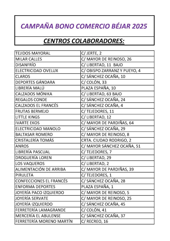 Campaña “Bonos Comercio de Béjar 2025”.