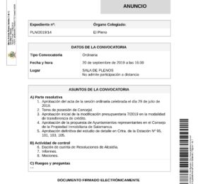 El viernes 20 de septiembre se realizará el Pleno Ordinario a las 16:00 horas en el Salón de Plenos del Ayuntamiento de Béjar....