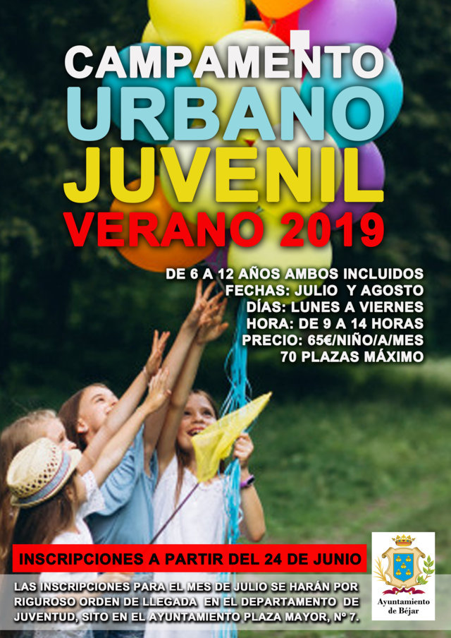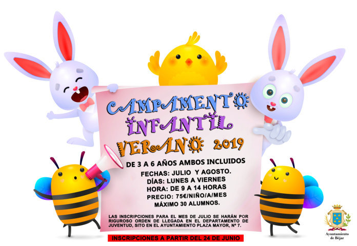 El plazo de recogida de inscripciones comienza el lunes, 24 de junio a las 8:30 horas en el departamento de Juventud del edificio de la Plaza Mayor, tanto para el campamento infantil como para el juvenil.