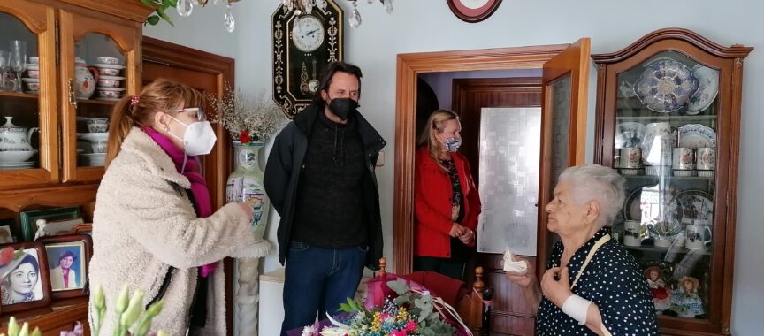 Durante la breve visita a la Señora Dolores, debido a la situación sanitaria en la que nos encontramos, el concejal de Servicios Sociales, Antonio Cámara y la concejala de Educación, Ana V. Peralejo le entregaron un ramo de flores y felicitaron por su cumpleaños y por su buena salud, ya que goza de una memoria intacta que espera seguir manteniéndola durante el mayor tiempo posible para disfrutar de su familia.