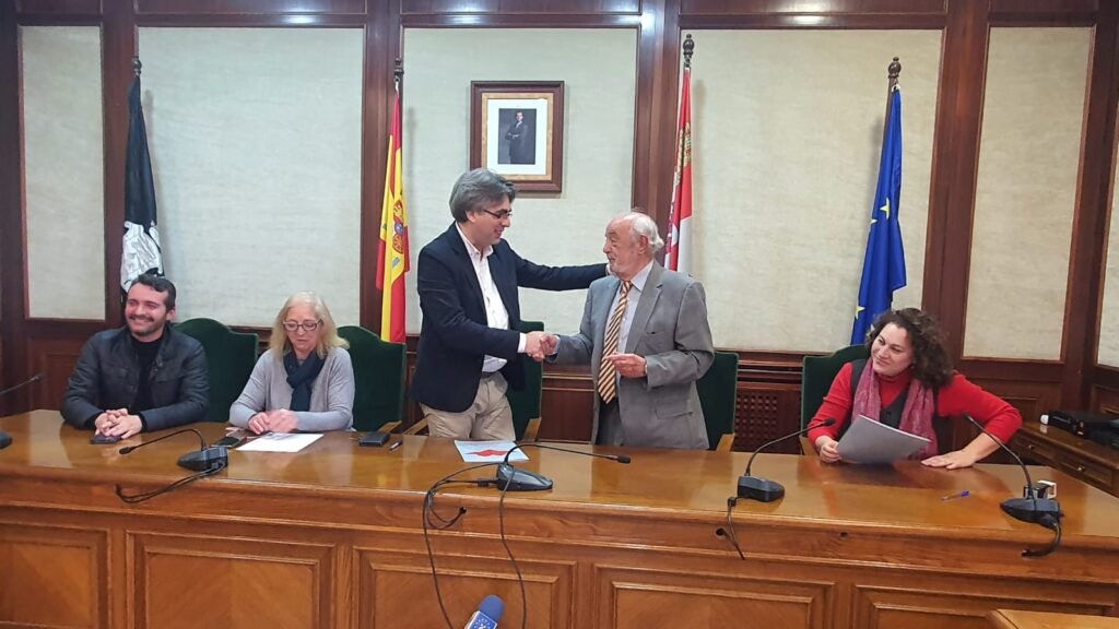 La firma del acuerdo tuvo lugar ayer lunes por la tarde en el en el Salón de Plenos con presencia del alcalde, Luis Francisco Martín, la concejala de Asuntos Sociales, Mayte Crego, el director de Cáritas, Manuel Bruno, la secretaria de Cáritas, Carolina Tardón y el arcipreste y párroco de San Juan, Roberto Hernández.