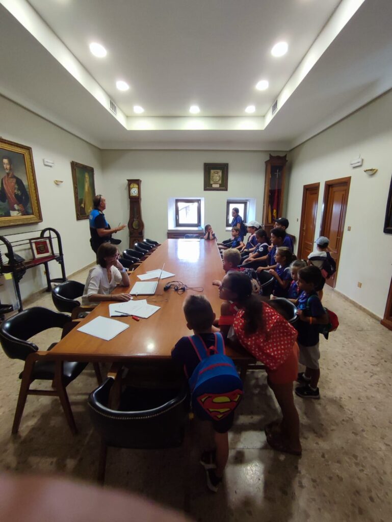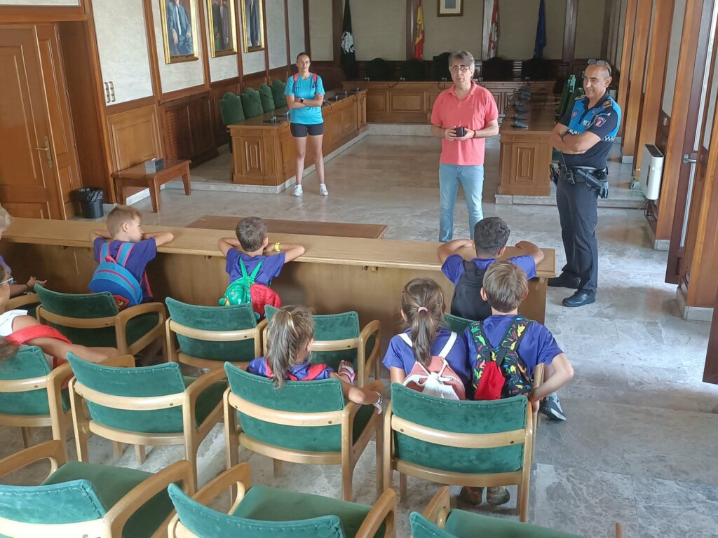 Los jóvenes participantes de, uno de los campamentos urbanos que se están llevando a cabo estos meses estivales en nuestra ciudad, Asociación Deportiva La Luna, han visitado, en la mañana de hoy, las dependencias del Ayuntamiento y la Policía Local de Béjar acompañados por sus monitores. El grupo de niños fue recibido por el alcalde de Béjar, Luis Francisco Martín, y el concejal de Deportes, Rubén Martín. Durante la visita, los pequeños tuvieron la oportunidad de aprender sobre el trabajo que se realiza en el Ayuntamiento de Béjar. A continuación, el grupo visitó las dependencias de la policía local en la planta baja del Consistorio dónde se les brindó información sobre la labor de la Policía Local en la ciudad y su compromiso con la seguridad y el bienestar de todos los ciudadanos.