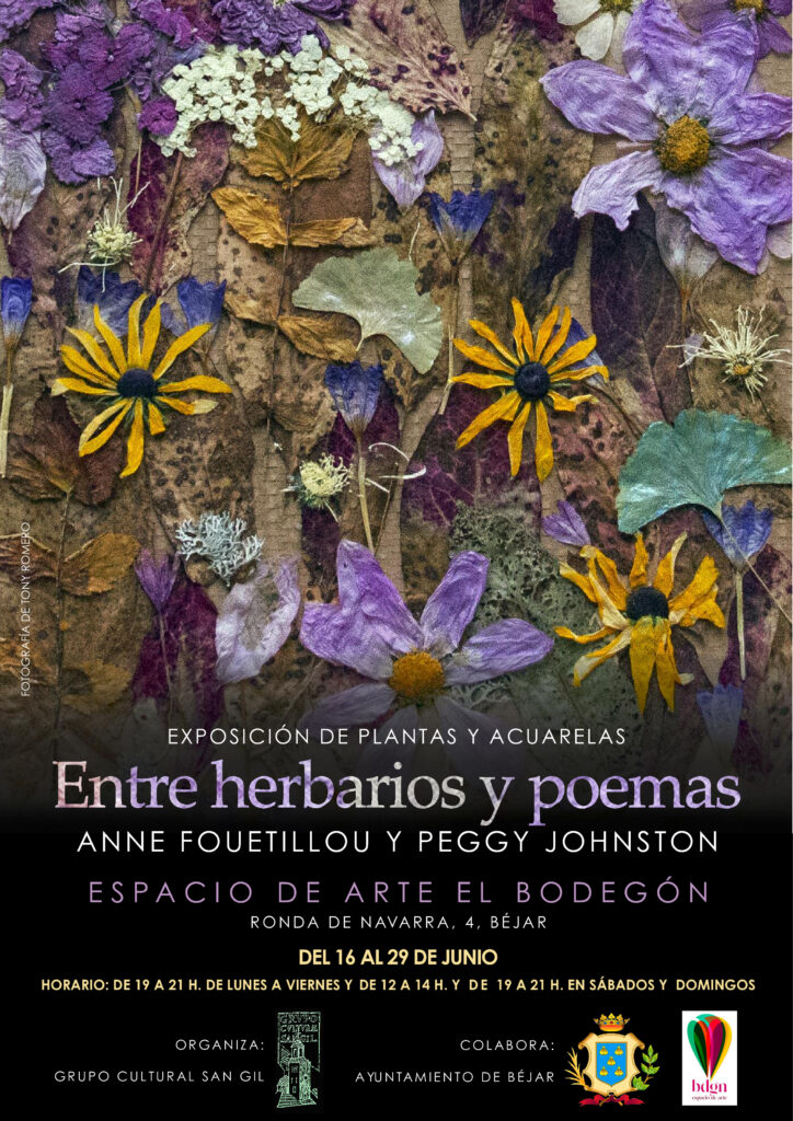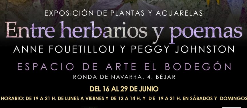 El espacio de Arte el Bodegón acogerá del 16 al 29 de junio una exposición de plantas y acuarelas “Entre Herbarios y Poemas” de Anne Fouetillou y Peggy Johnston. la muestra podrá visitarse en horario: de 19 a 21 h. de lunes a viernes y de 12 a 14 h. y de 19 a 21 h. sábados y domingos.