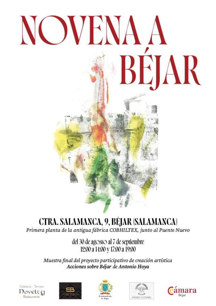 Esta exposición es el resultado de del proyecto participativo de creación artística de “Acciones sobre Béjar” de Antonio Hoya. Se podrá ver del 30 de agosto al 7 de septiembre de 12 a 14 h y de 17 a 19h en la Ctra de Salamanca 9, 1º planta de la Antigua Fábrica Textil COBHILTEX, junto al Puente Nuevo