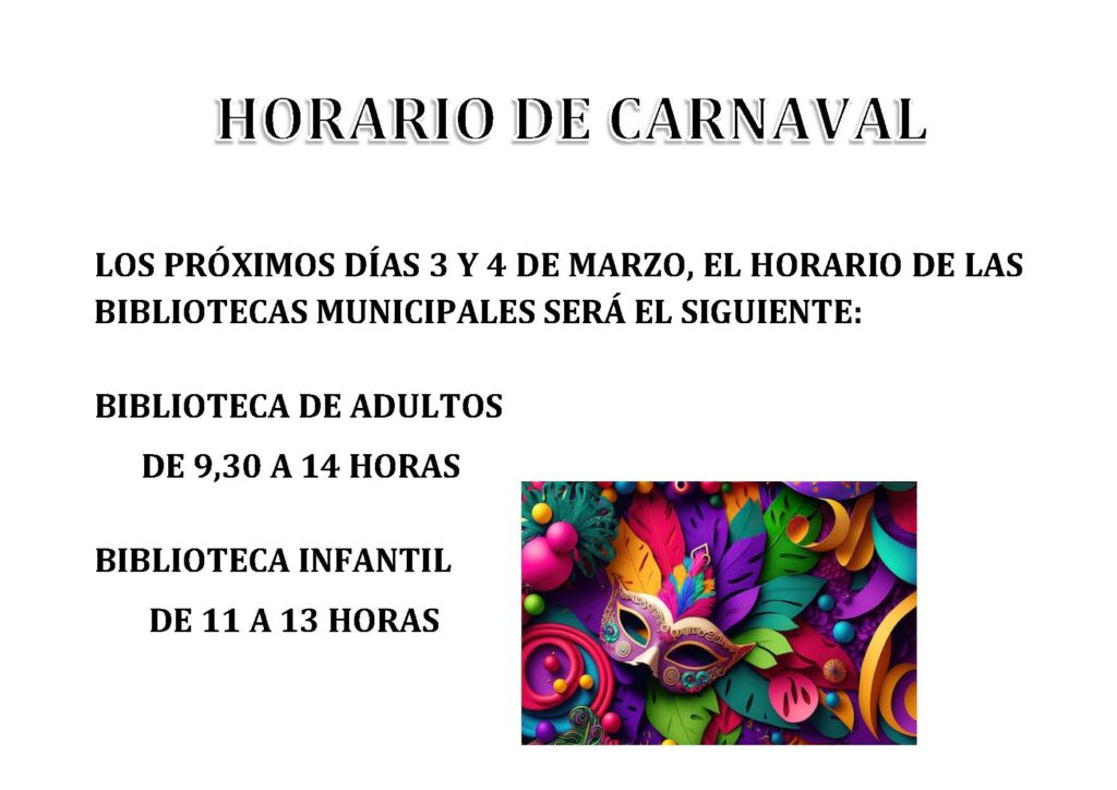 Horario de la Bibliotecas Municipales para Carnaval