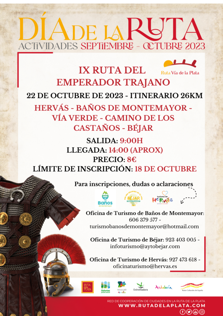 La ruta se realizará el domingo, 22 de octubre y tendrá unos 26 kilómetros que comenzarán desde Hervás, pasará por Baños de Montemayor, vía verde, camino de los castaños y concluirá en Béjar sobre las 14:00 h.