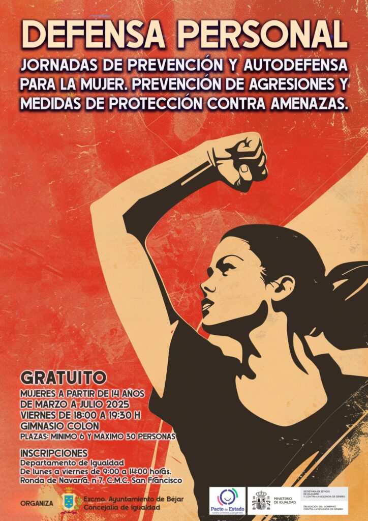 .Jornadas de Defensa Personal de prevención y autodefensa para la mujer. Prevención y de agresión y medidas de protección contra amenazas, organizadas por el Departamento de Igualdad, que se llevarán a cabo de marzo a a julio de manera gratuita. Están destinadas para mujeres a partir de 14 años y se desarrollarán los viernes de 18,00a 19,30 en el Gimnasio Colón
