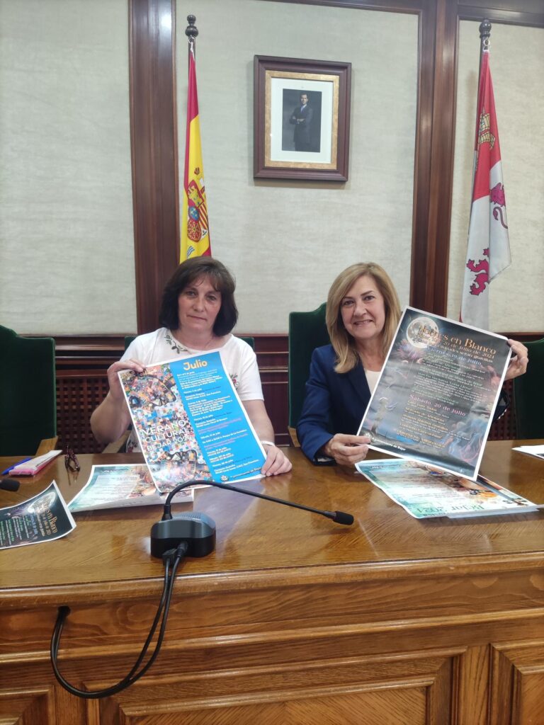 La concejala de Cultura, Purificación Pozo, junto a la representante de los mercados de artesanía de Béjar y comarca, Pilar Hernández, ha presentado, en la mañana de hoy, la programación cultural del mes de julio y los conciertos de la Banda de música para el verano. Así el programa empieza este fin de semana y se extiende hasta el 30 de agosto. Se retoman actividades como Las Noches en Blanco y además habrá varias exposiciones.