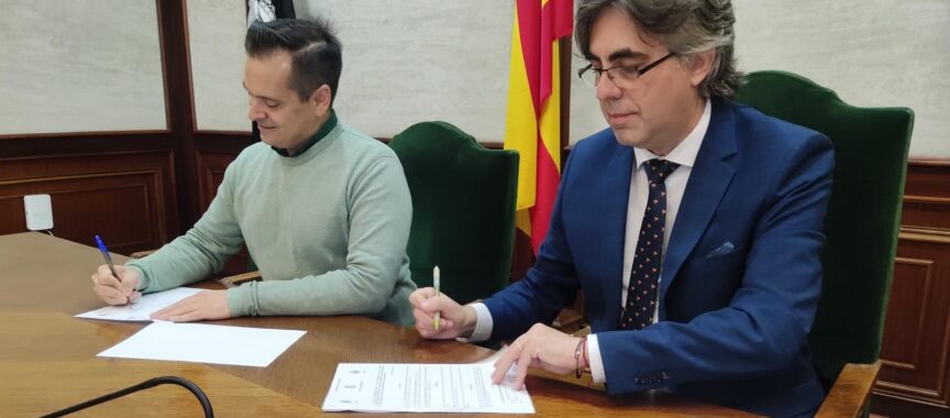 El alcalde de Béjar, Luis Francisco Martín y el alcalde de Baños de Montemayor, Oscar Mateos, han firmado en la mañana de hoy el convenio de colaboración para la realización de la X ruta senderista del Emperador Trajano.