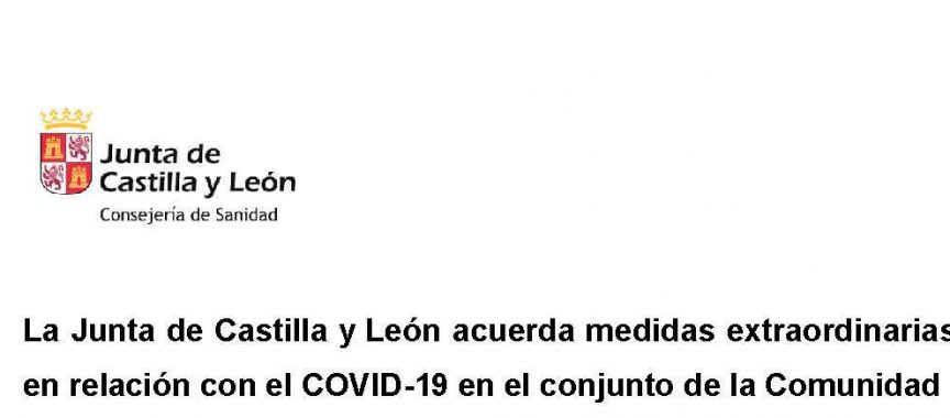 La Junta de Castilla y León acuerda medidas extraordinarias en relación con el COVID-19 en el conjunto de la Comunidad