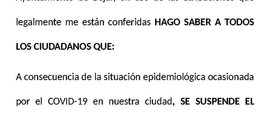 Desde el Ayuntamiento de Béjar se ha emitido un bando informando que debido a la situación epidemiológica ocasionada