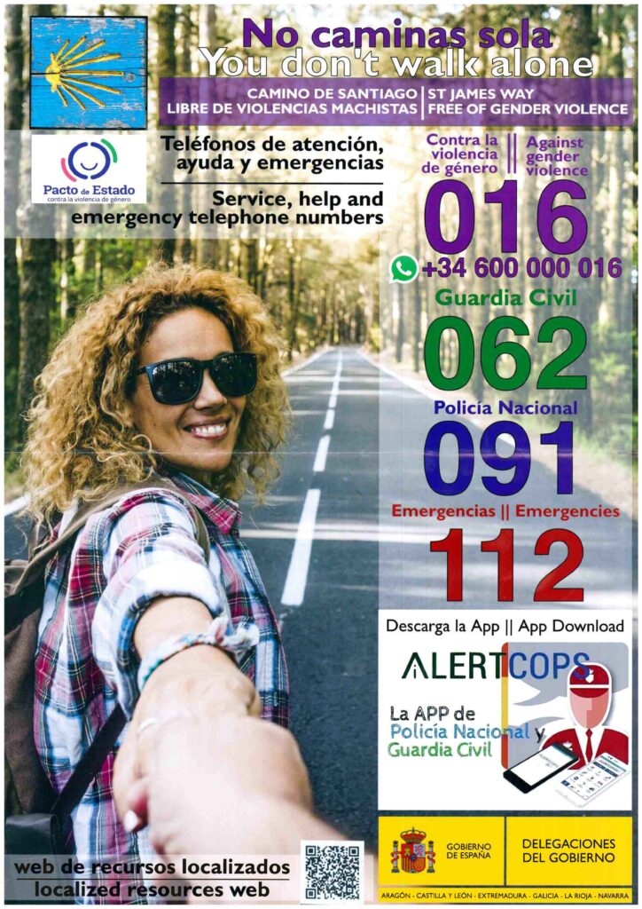 Incluyen información a la que pueden acceder a través de códigos QR, que enlazan con los teléfonos de atención 016, 062, 091 y 112. También se les recomienda descargar en el móvil la aplicación ‘AlertCops’ que permite compartir la ubicación de las peregrinas con las Fuerzas y Cuerpos de Seguridad del Estado.