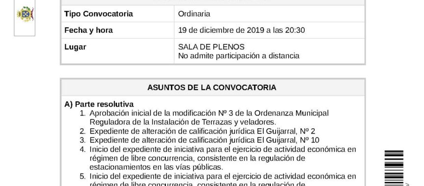 PLENO ORDINARIO 19-12-2019 A LAS 20:30 H