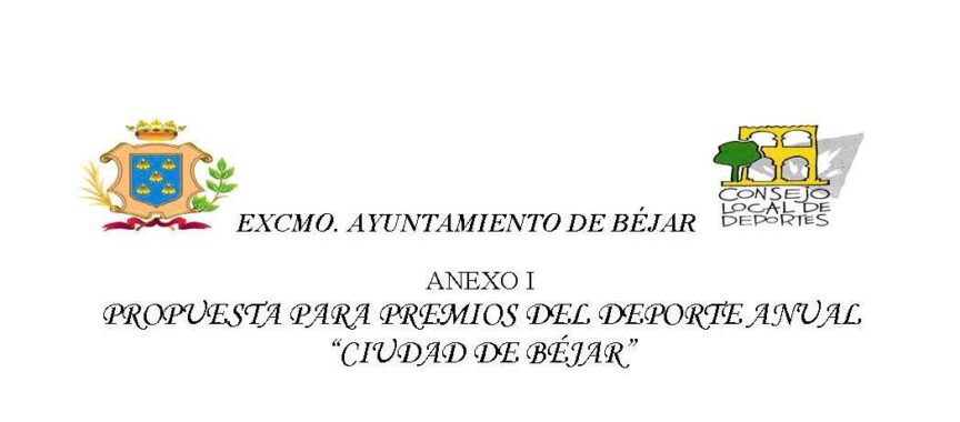 Las propuestas, se podrán enviar al Departamento de Deportes, a través del correo electrónico del Departamento, deportes@aytobejar.com; en formato Word. Las propuestas se presentarán en el documento habilitado al efecto, ANEXO 1, del Reglamento de los Premios Anuales del Deporte “Ciudad de Béjar”, que se encuentra en la página web del Ayuntamiento de Béjar.