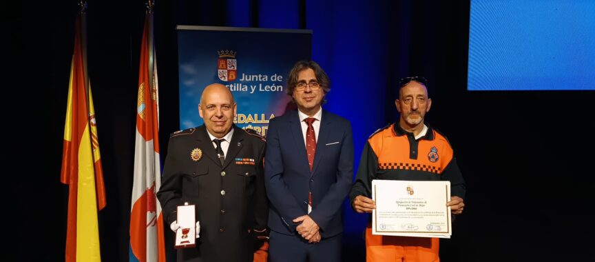 El alcalde de Béjar, Luis Francisco Martín, viajó hasta Astorga acompañando a los dos voluntarios de Protección Civil que se desplazaron para recoger la Medalla al Mérito de la Protección Ciudadana de Castilla y León 2024. Un reconocimiento que realiza la Junta de Castilla y León a aquellas personas o instituciones destacadas por su trayectoria profesional o por actuaciones excepcionales en situaciones de riesgo en el ámbito de las emergencias y la protección civil.