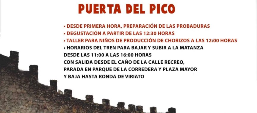 Además, se pondrá en marcha el tren turístico que hará un recorrido desde las 11:00 h hasta las 16:00 h de bajada y subida a la gente que quiera asistir a la matanza. El primer viaje saldrá a las 11:00 h desde el caño de la calle Recreo, hará una primera parada en La Corredera (Parque Municipal), y una segunda parada en la Plaza Mayor, la última parada será en el mirador en la Ronda de Viriato. Las personas que quieran hacer el recorrido de vuelta lo podrán hacer con las mismas paradas y mismo recorrido.