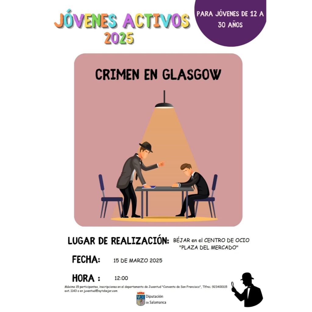 -Crimen en Glasgow: día 15 de marzo, a las 12,00h, en el Centro de Ocio “El Mercao” de Béjar