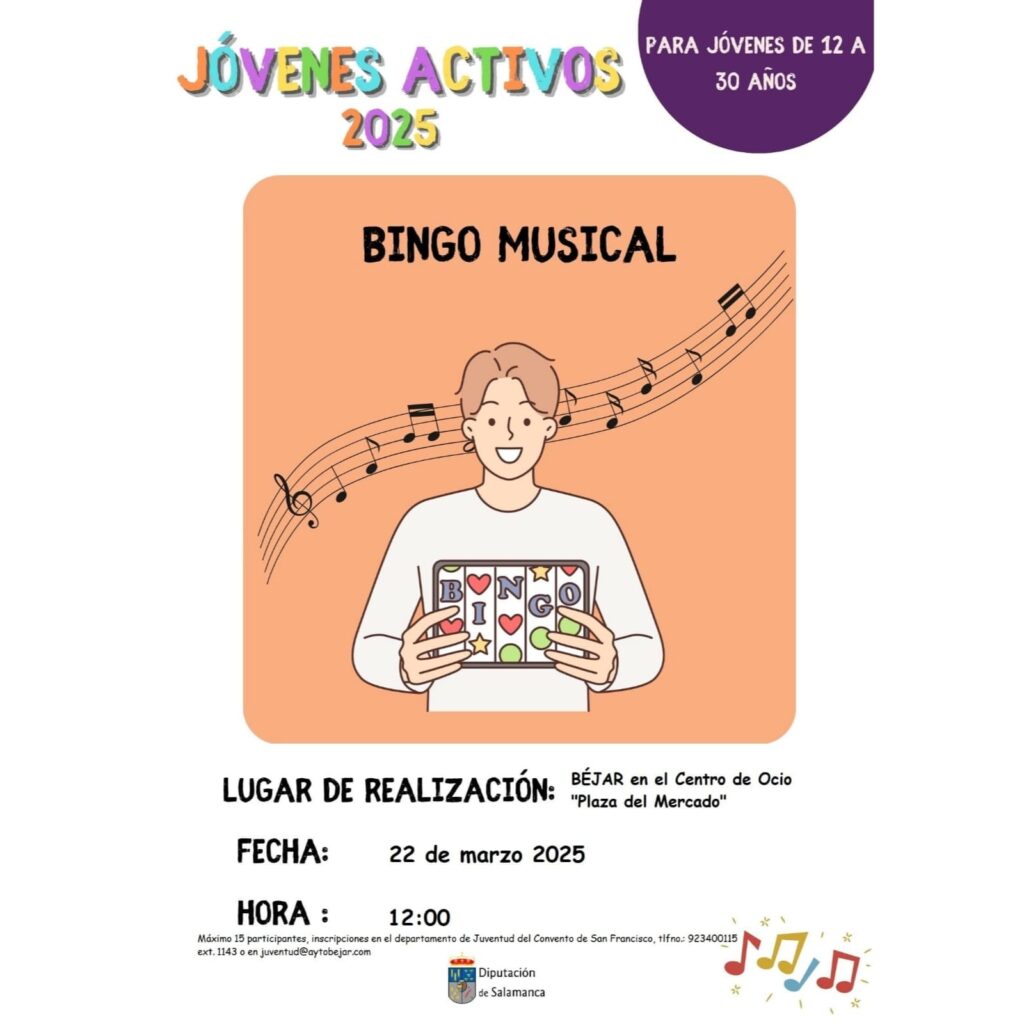 -Bingo Musical: día 22 de marzo, a las 12,00h, en el Centro de Ocio “El Mercao” de Béjar