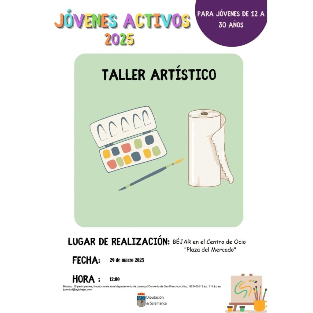 -Taller Artístico: día 29 de marzo, a las 12,00h, en el Centro de Ocio “El Mercao” de Béjar