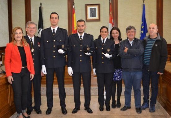 El alcalde de Béjar Alejo Riñones, ha presidido este martes en el Salón de Plenos del Ayuntamiento el acto de toma de posesión de los 3 nuevos agentes, entre ellos una mujer, que se incorporan la plantilla del Cuerpo de Policía Local.