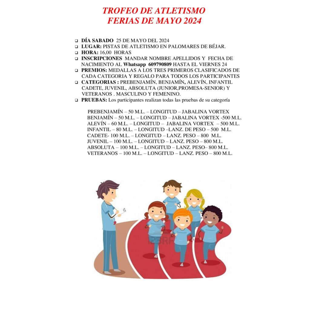 El próximo sábado 25 de mayo del 2024 tendrá lugar el Trofeo de Atletismo Ferias de Mayo 2024
