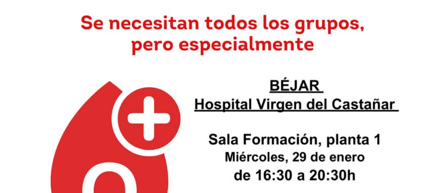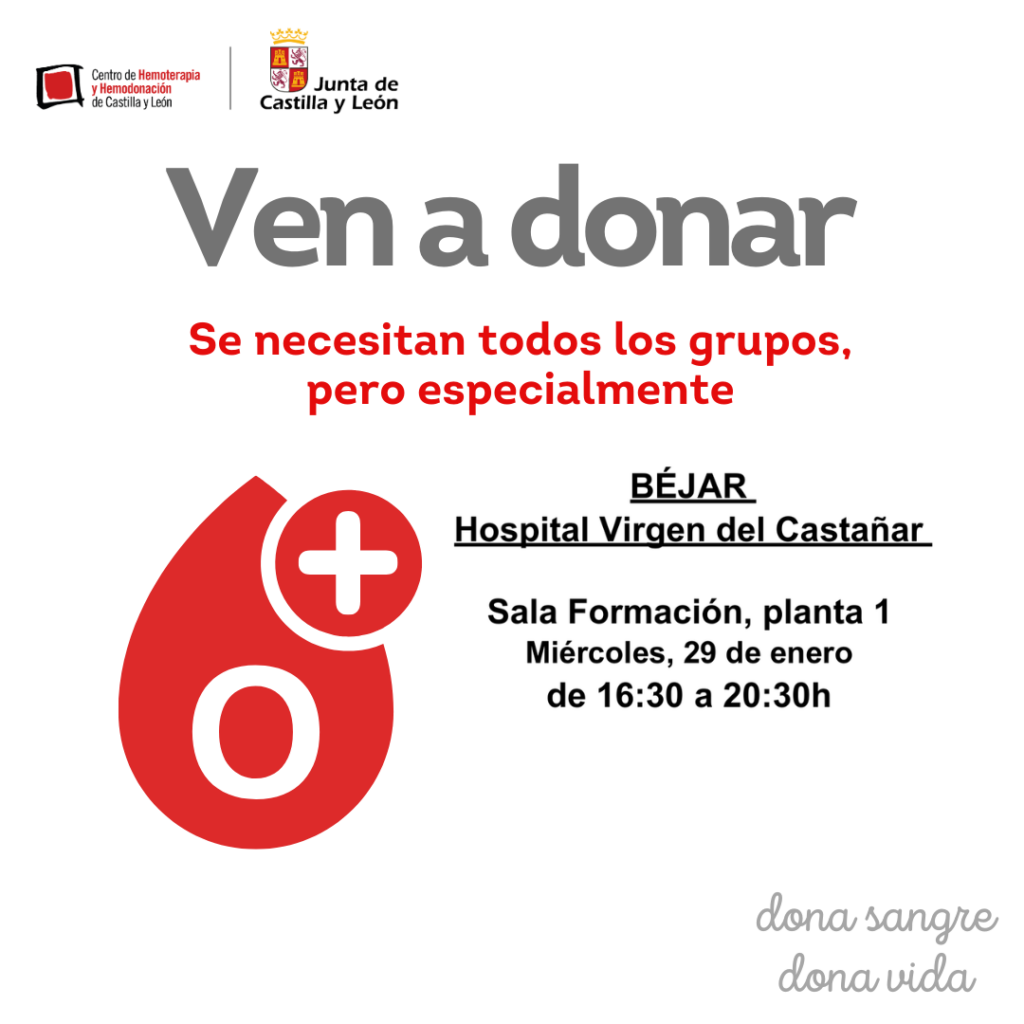 Donar sangre es un acto de solidaridad y generosidad que puede salvar vidas. En esta ocasión, el Centro de Hemoterapia y Hemodonación de Castilla y León, junto con la Junta de Castilla y León, hacen un llamamiento urgente a la población para acudir a la jornada de donación en Béjar.